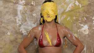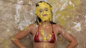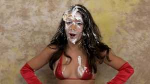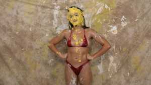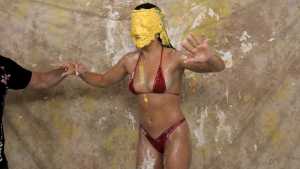 Jenny shows her sexy side in a bikini. Slime is not as much fun to me as pies so it is nice that Rich usually involves pies in his slime scenes. Jenny does a nice job of keeping her nice smile on display.