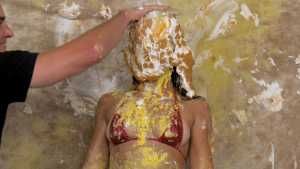 I love this scene. Alex is absolutely gorgeous and likeable, and I loved her performance, going being confident and a bit naive at the start (ducking away from the pies) to being increasingly resigned as she got more and more gunged. A fantastic gunge model. Looking forward to seeing more.