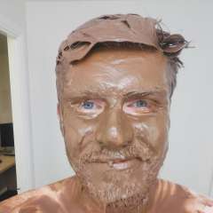 Megapies rolled around with PieInstructorPM on a tarp covered with batter