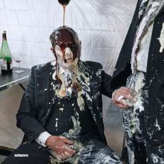 MasterHeart was surprised by Slopmonster with a big sloppy cream pie to the face